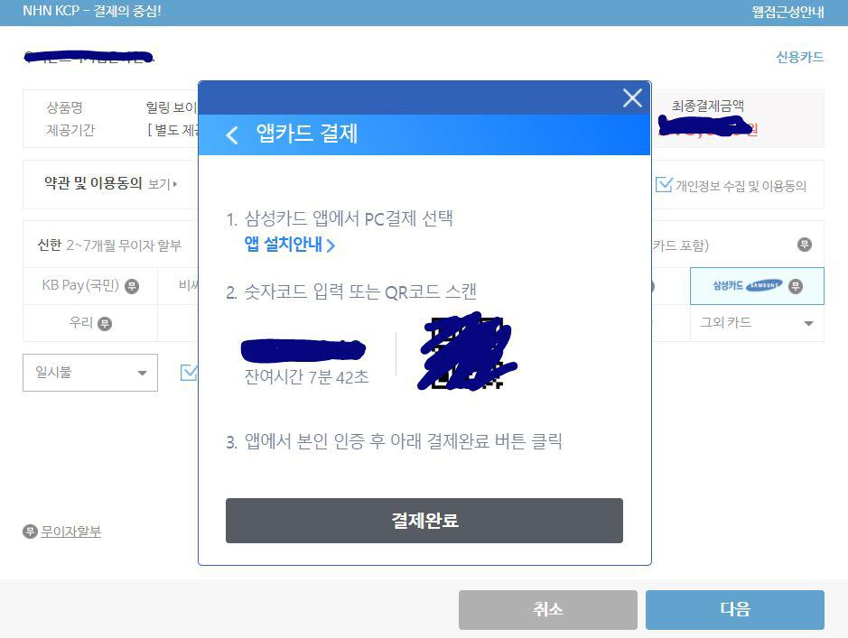 삼성 앱카드로 결제하게 되었어요.