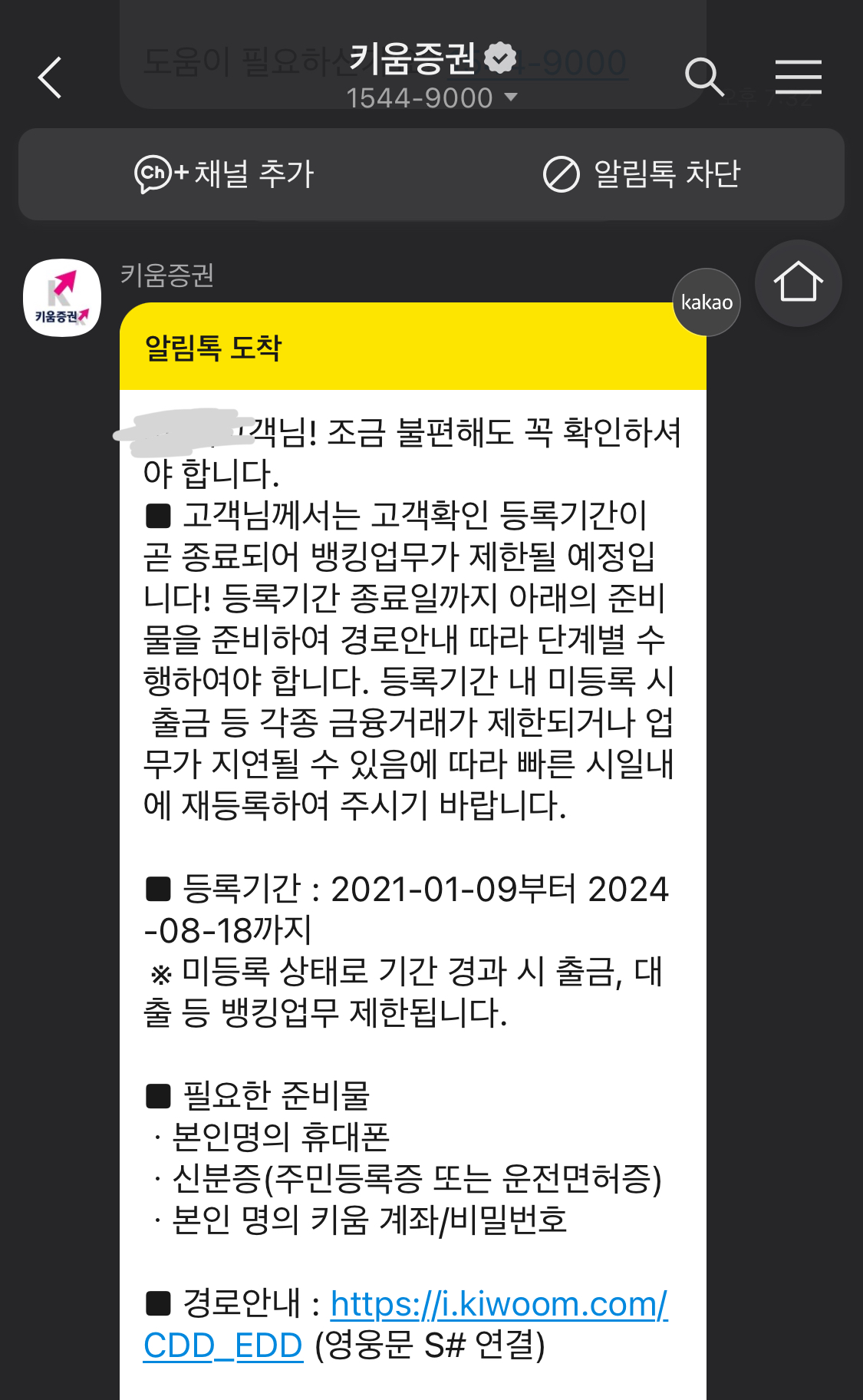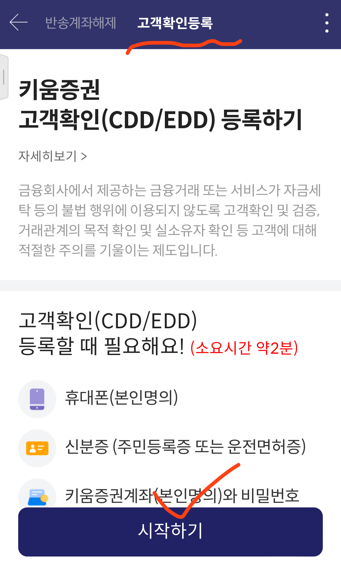 오늘은 키움증권의 고객확인등록